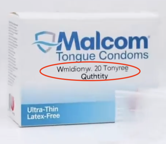 Despite the small "FDA approved" watermark seen in the clip about "Malcom tongue condoms," the real FDA database did not show that such an item has ever been tested or approved: