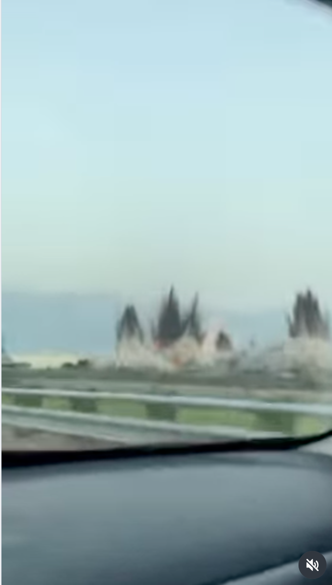 Additionally, as the screenshots above demonstrate, the post-blast smoke formed unnaturally uniform, well-defined cones, while real-life strikes (archived here) tend to produce a diffuse veil of smoke.