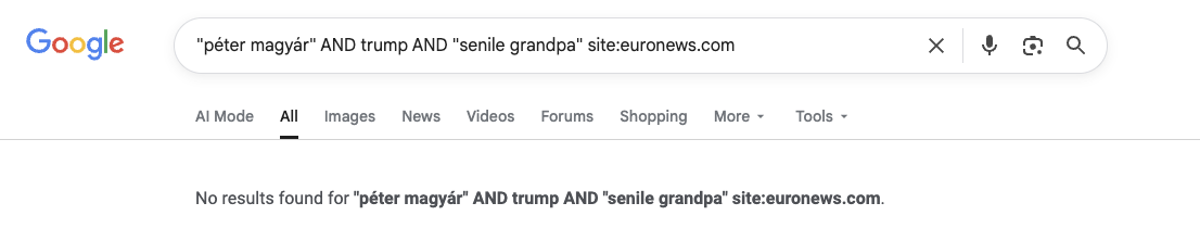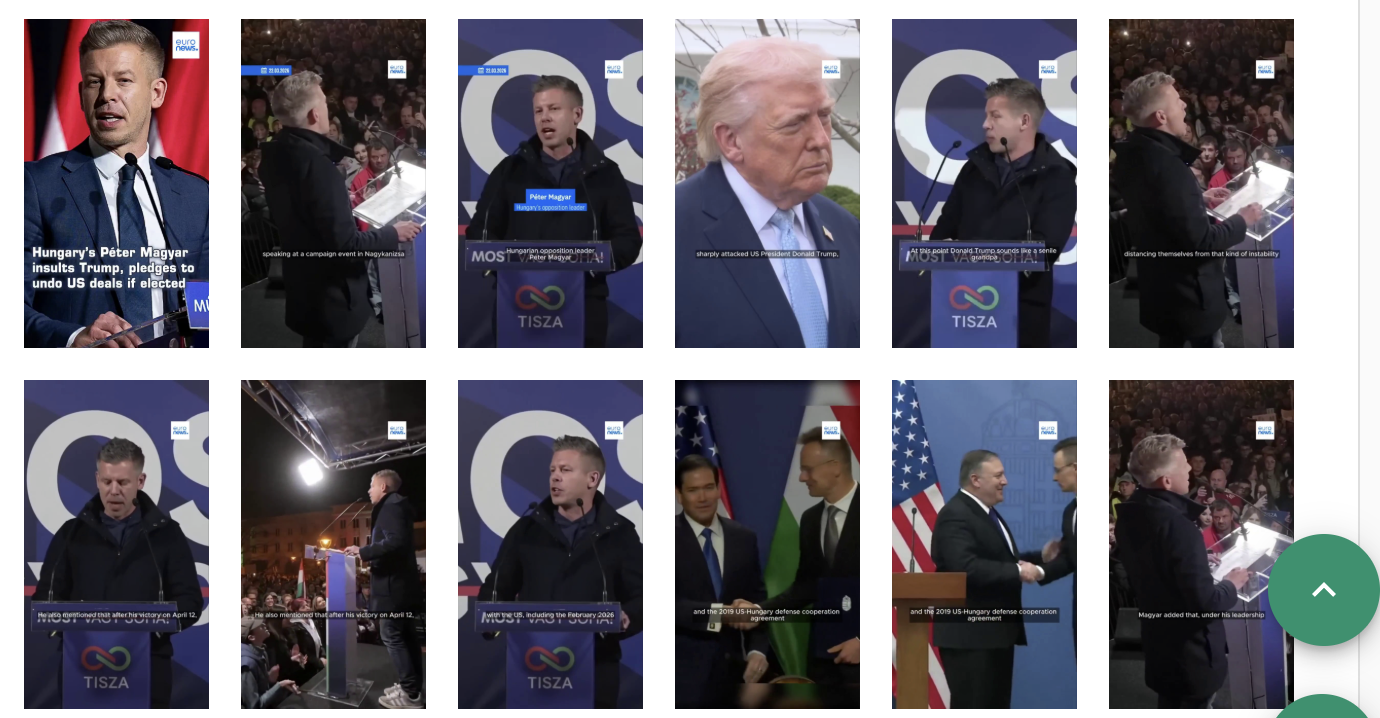 Did Hungarian opposition leader Péter Magyár, who is challenging sitting Prime Minister Viktor Orbán in the April 2026 election, describe U.S. President Donald Trump as "a senile grandpa" in a public speech? No, that's not true: The claim originated from a fake report that stole the logo of Euronews, a real news organization, in an apparent attempt to make the claim more believable. The viral clip reused footage of a real rally without the original sound. The full recording of the event showed that Magyár didn't say what social media posts attributed to him.