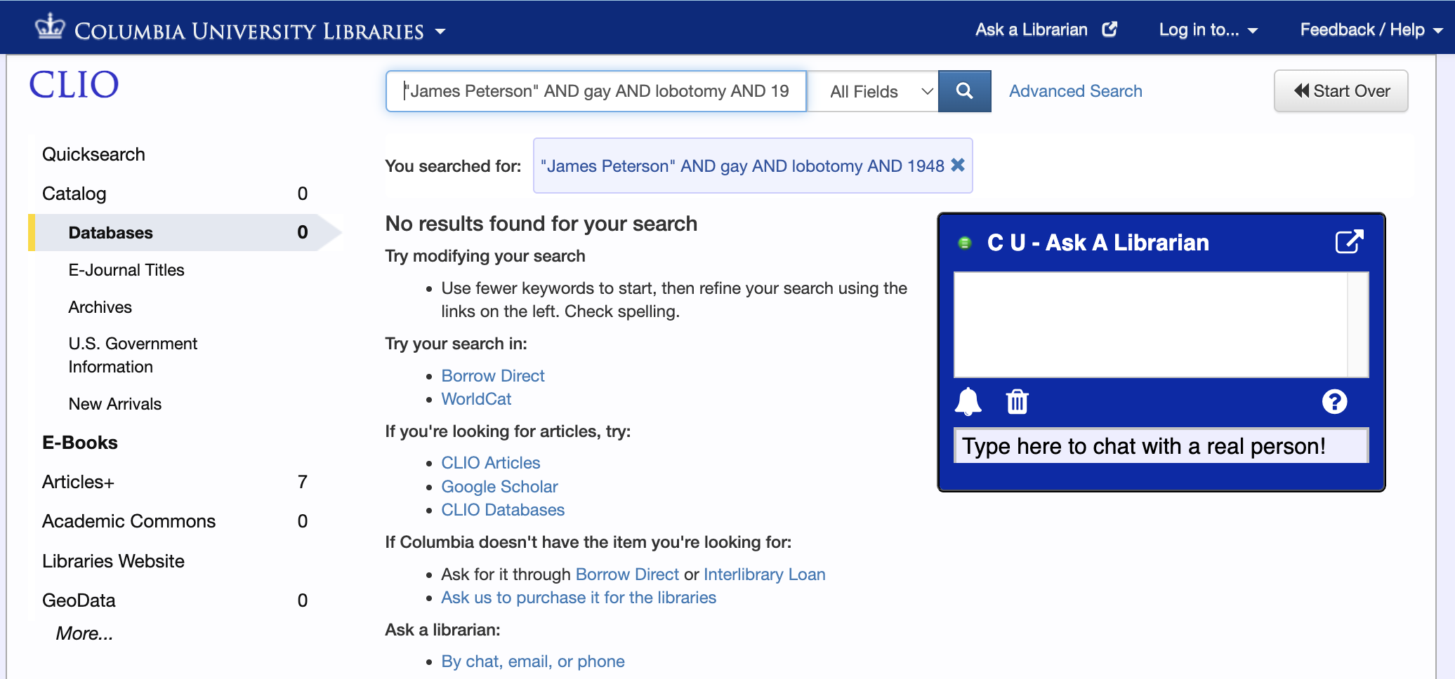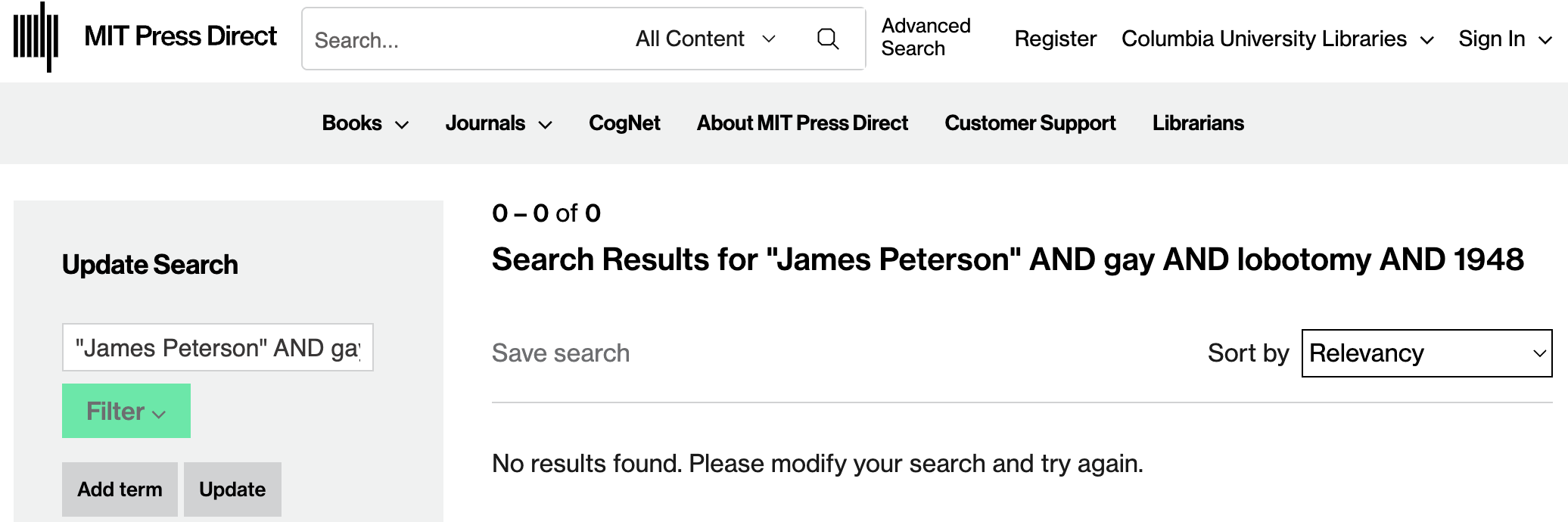 After that, Lead Stories searched CLIO (archived here), which is the online catalogue of Columbia University Libraries, and showed no matches, either: