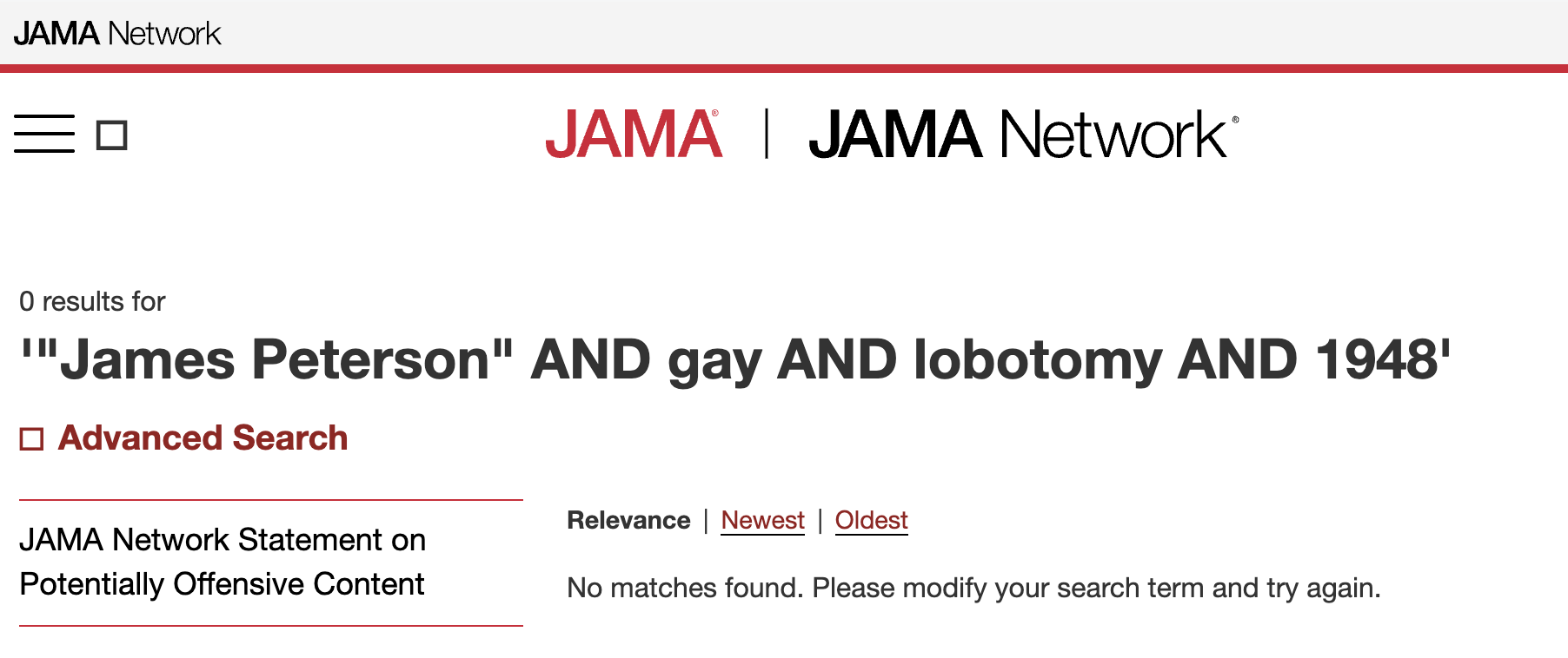 Lead Stories searched Google Scholar for the keywords seen here (archived here) to find out if there have been any credible scientific publications about the supposed case of "James Peterson", but that produced zero results.