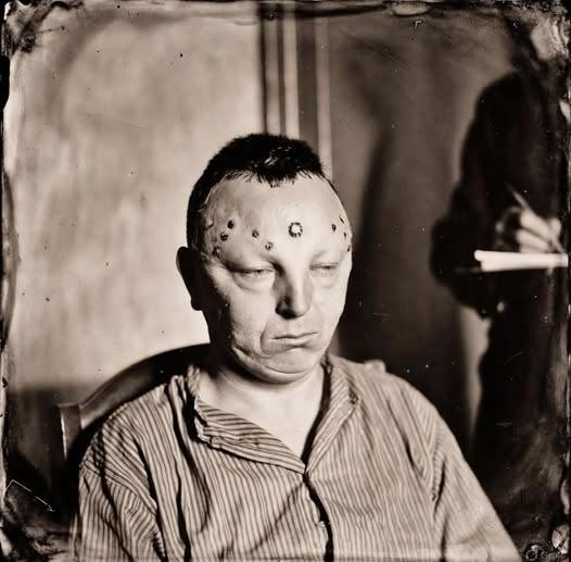 Contrary to the caption, however, the image did not show a person who underwent a transorbital lobotomy. The now-abandoned, controversial neurosurgical procedure (archived here) that severed connections in the prefrontal cortex utilized other points of access to the brain, and while it had numerous side effects, including loss of personality and death, transorbital lobotomy did not leave people with multiple holes on their foreheads.