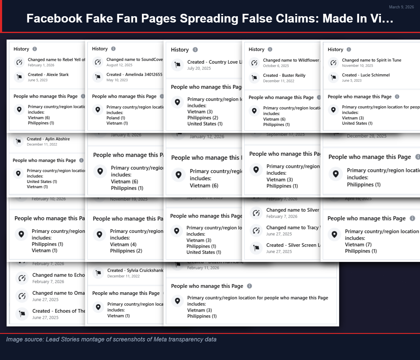 This montage of the Meta transparency data for each page confirmed that they are managed primarily from Vietnam.
