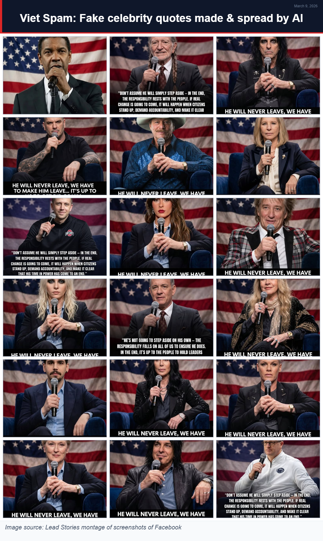 The Vietnam connection is significant, since fact checkers, including Lead Stories, have identified a major source of AI-generated false stories coming from a single operation based in that Southeast Asian country. You can see recent reporting and fact checks mentioning that country here.