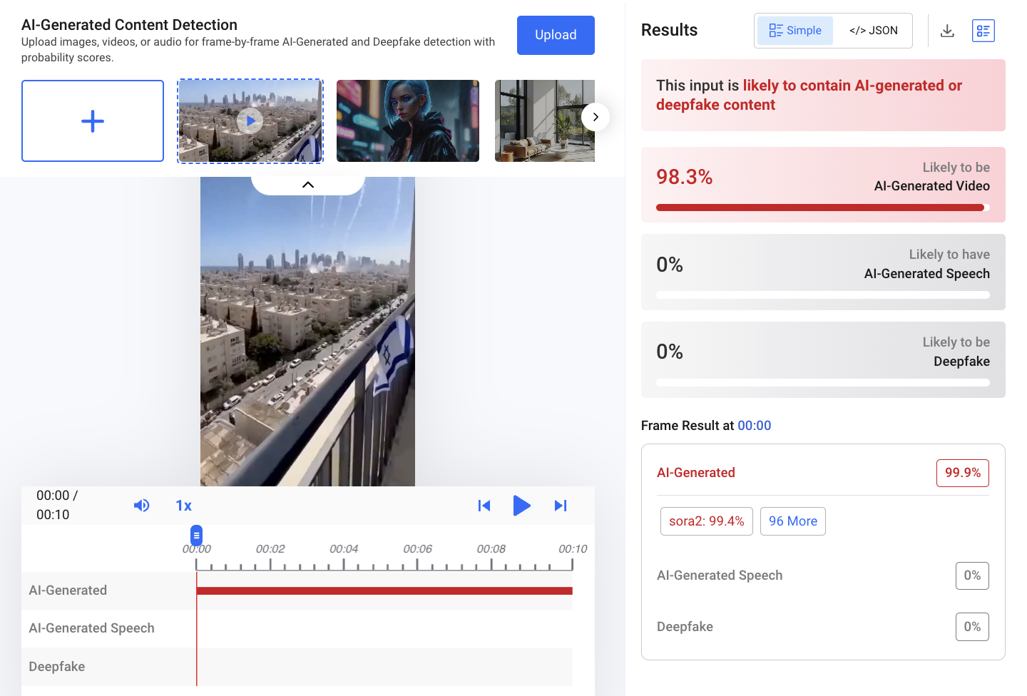 Another tool, Illuminarty, concluded the probability of the frame being AI-generated exceeded 90.7%