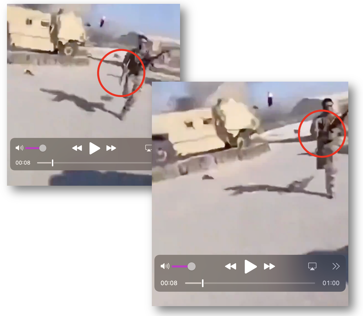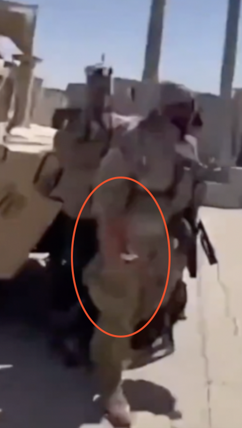 At the 00:05 mark, a servicemember is missing a hand. There is no blood, which suggests that the missing hand is an AI artifact rather than an actual injury: