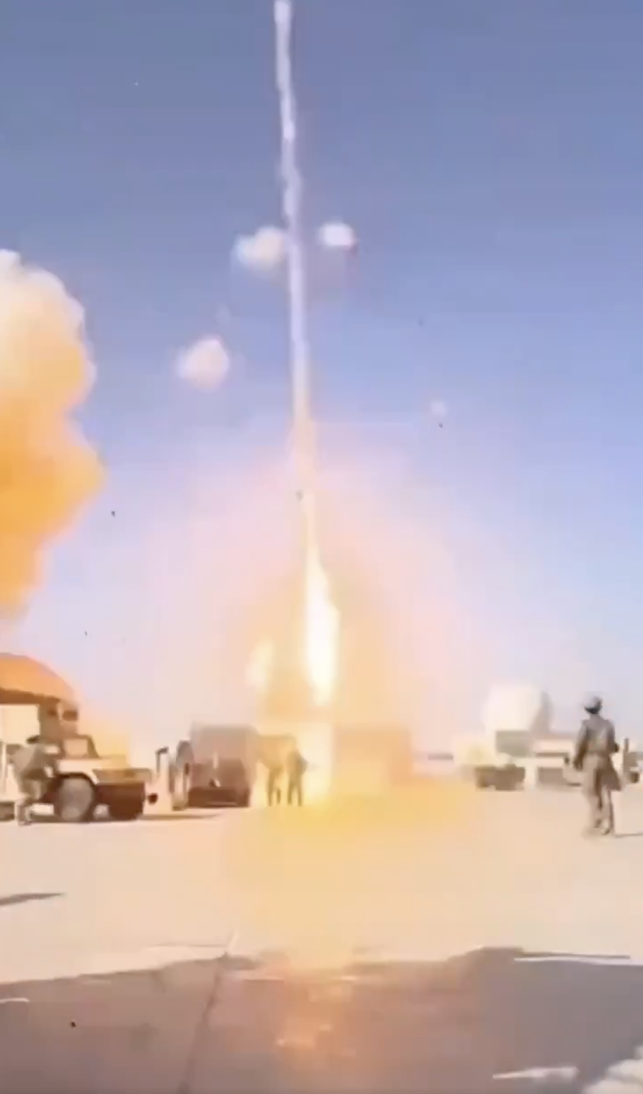 At the 00:50 mark, we see something that appears to be a reverse explosion: At first, there is a tremendous blast on the ground, but a second later, an object resembling a weapon flies into the sky from the base -- without appearing to be a retaliatory U.S. missile: