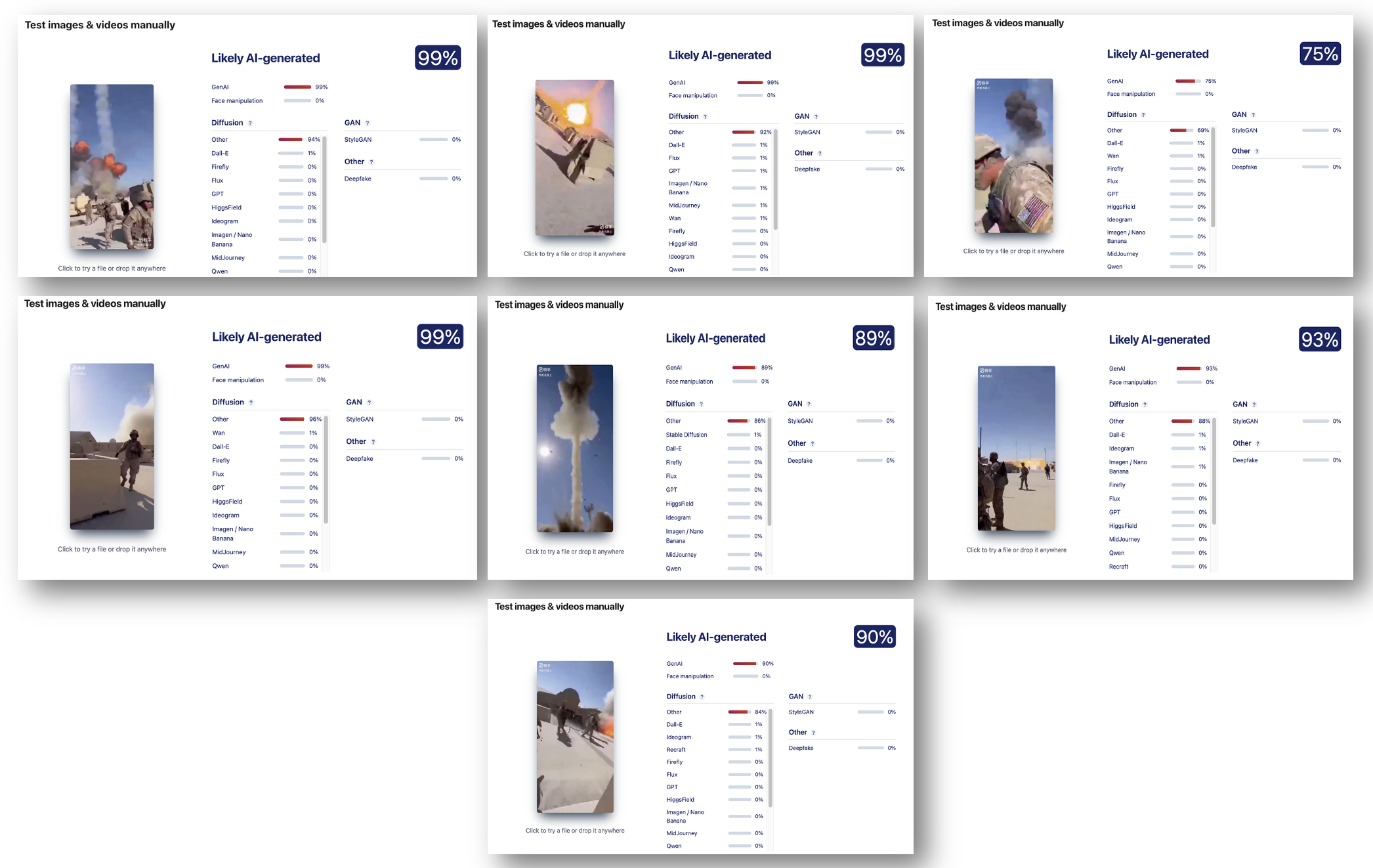 The two most recent models from 2025 for detecting AI-generated content available in the DeepFake-o-meter suggested that the video contained AI-generated frames: