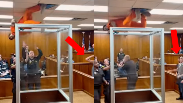 Is a video of a defendant trying to escape from court by leaping toward the ceiling authentic? No, that's not true:A detection tool flagged the video as likely AI-generated. Additionally, Lead Stories could not find any official reports related to such a claim outside of social media posts.