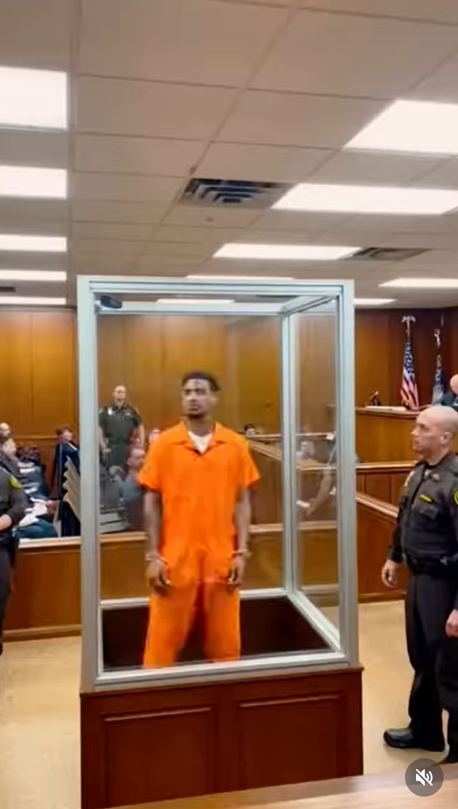 Visual clues indicate that the video is AI-generated, as the images below highlight. Besides its obvious low quality, the video's glaring issue is that the defendant's vertical, flat-footed leap is highly improbable.