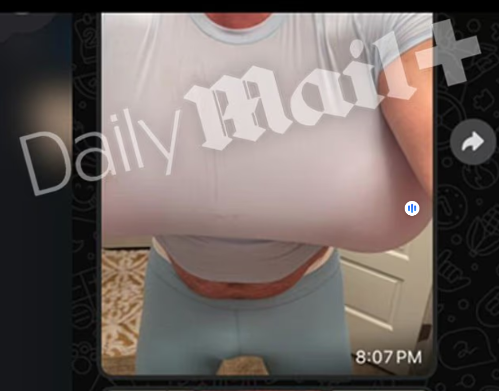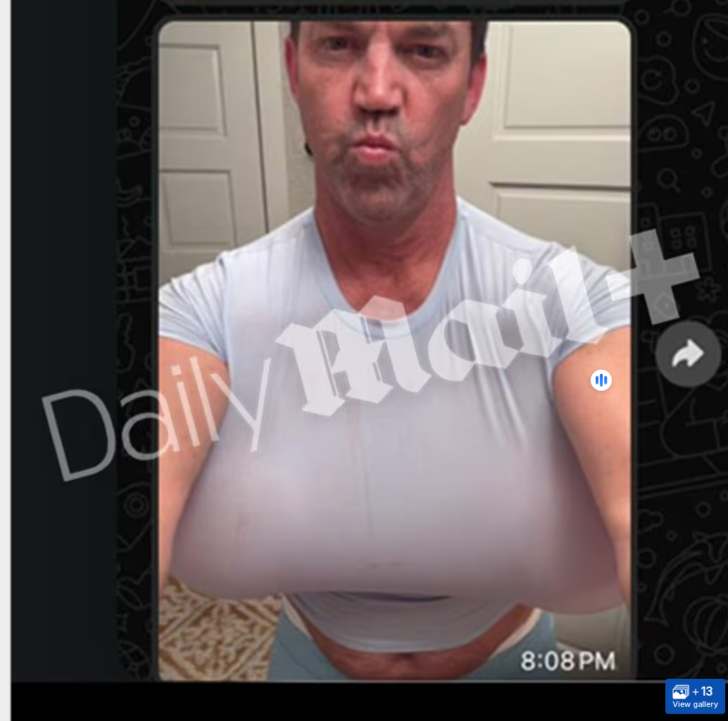 Is a photo from the Daily Mail showing Byron Noem wearing a light blue T-shirt with large fake breasts and a dog in the background real? No, that's not true: That image of the husband of former Homeland Security Secretary Kristi Noem is not one of the photos published by the British tabloid. The authentic photos of Byron Noem in the newspaper are close-ups and do not show a dog.
