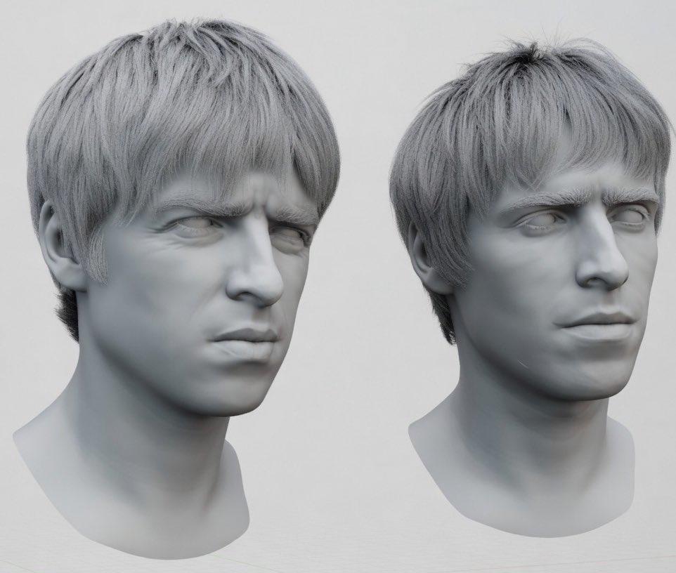 The rendering appears to be based on a portrait featured in promotional materials for the 2016 documentary "Supersonic" about the band Oasis. The image (pictured below) appears in an Oct. 25, 2016 article in Rolling Stone (archived here). The 3D rendering has captured not only the individual facial expressions of the brothers, but copied the details of their hair styles.