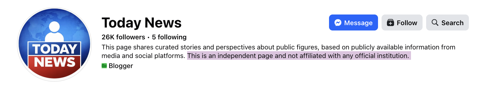 The first mention of the claim found by Lead Stories went back to March 9, 2026, when it was published by two pages: a group on Facebook titled "News Today" (archived here) and a website with a similar name, Todaystories.feji.io (archived here).