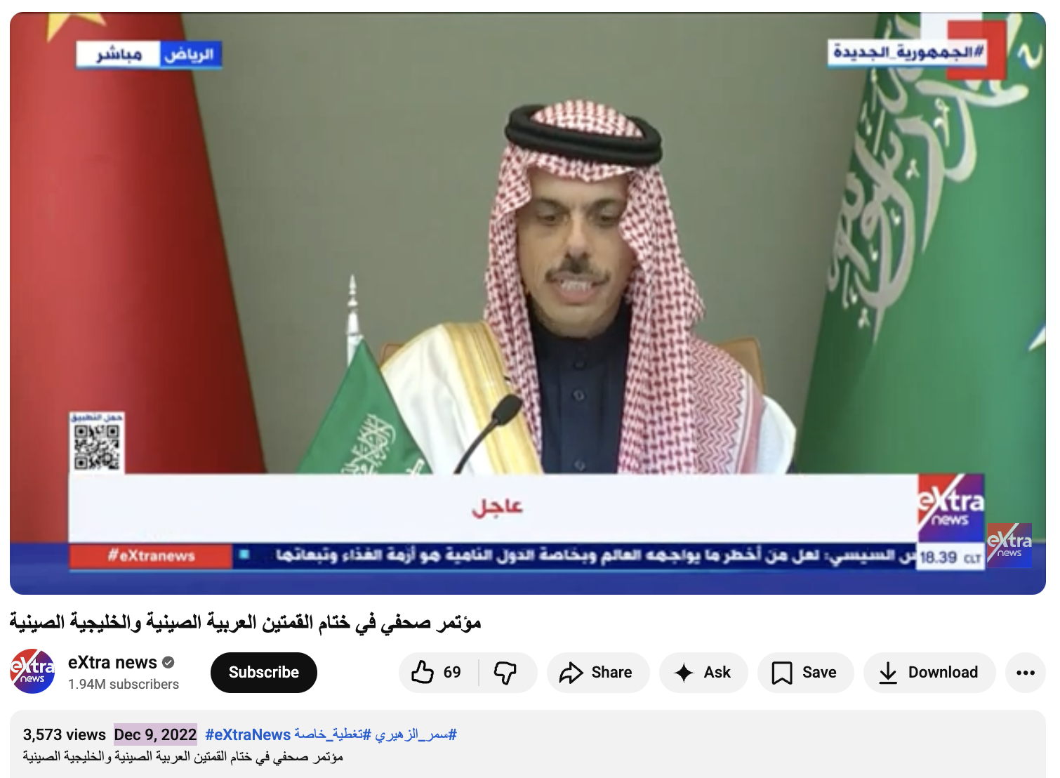 Press conference at the conclusion of the Arab-Chinese and Gulf-Chinese summits, December 9, 2022.