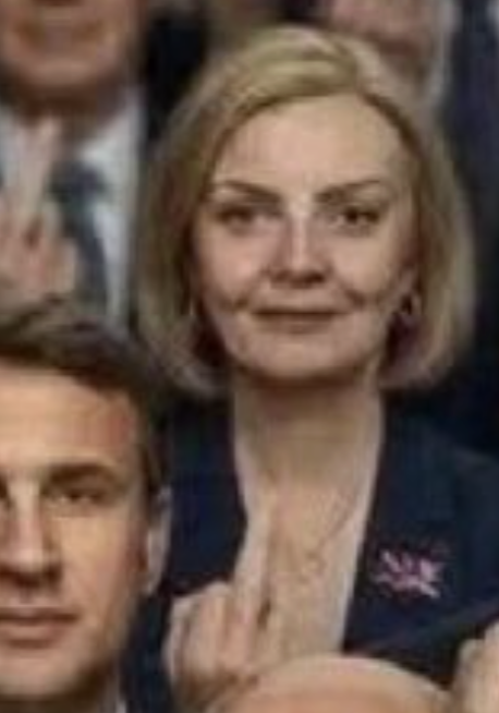 Liz Truss lost this job even earlier, on Oct. 25, 2022 (archived here). Furthermore, she was one of the speakers at the Conservative Political Action Conference in the U.S. in February 2025. One year later, in February 2026, she posted (archived here and here) a photo with Donald Trump (archived here) under the caption saying, "Right about everything." Thus, she was unlikely to be authentically portrayed giving the middle finger to the same U.S. president just weeks later.