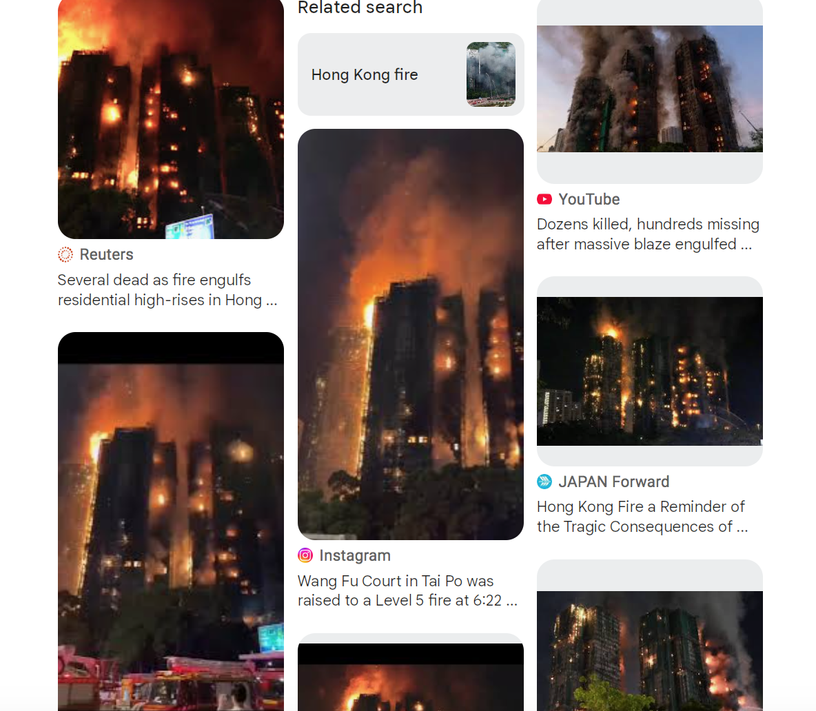 A reverse image search on Google found multiple news reports of a fire in Hong Kong in November 2025, as this screenshot shows: