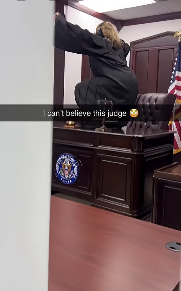Does a video showing a judge dancing on a desk show an authentic judge in a courtroom? No, that's not true: The video was created by comedian Ebony Merkerson and is a staged skit. She is a recurring actress from other viral rage-bait clips that do not show authentic courtroom footage. Signs of the skit are she is dancing on a desk and not a judge's bench and a generic courtroom seal that does not depict any actual jurisdiction.